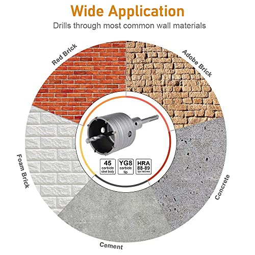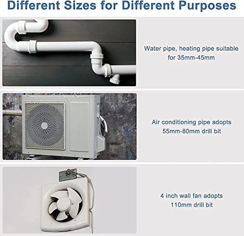 【Ampi scenari di applicazione】 Può essere utilizzato per forare muri di cemento, muri di cemento, mattoni, ecc. Adatto per impianti di condizionamento, tubazioni dell'acqua, scaldabagni, canne fumarie, fognature, ecc.