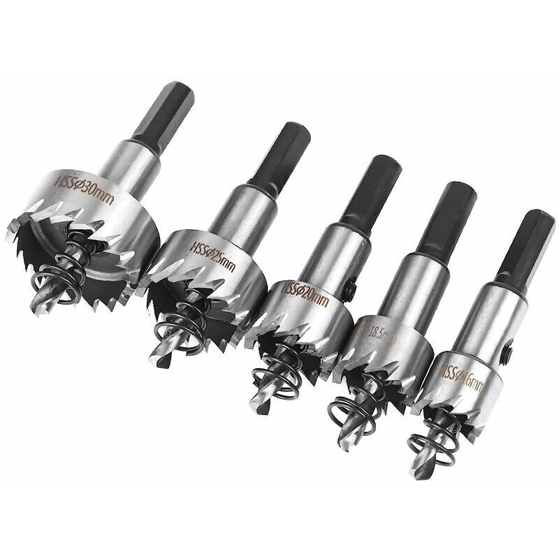 SUPER MATERIALE - Sega a tazza in acciaio ad alta velocità HSS, che ha un'elevata durezza e resistenza all'usura. Dopo la molatura ad alta densità e il trattamento termico di fascia alta, ha un'elevata resistenza e precisione per eseguire il taglio senza intoppi. 【SET DI SEGHE A 5 FORI】 16 mm/0,6 pollici, 18,5 mm/0,7 pollici, 20 mm/ 0,8 pollici, 25 mm/1 pollice, 30 mm/1,2 pollici;
