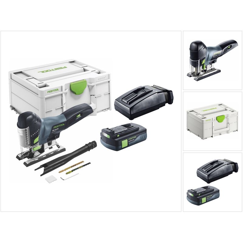 Contenuto della fornitura: - 1x sega a pendolo a batteria Festool CARVEX PSC 420 - 1x lama a denti fini - 1x lama universale - 1x protezione antischegge - 1x batteria Festool BP 18 Li 3,0 C 18 V 3,0 Ah ( 577658 ) - 1x caricabatterie rapido Festool TCL 6 ( 201135 ) - 1x Festool Systainer SYS3 M 187 ( 204842 ) Descrizione del prodotto: La sega a pendolo a batteria Festool PSC 420 è ideale per un'ampia gamma di applicazioni, come il taglio e la rifilatura, ad esempio per tagliare splnes e piani di cottura, lavori di montaggio di mobili, cucine e arredi interni. È ideale anche per tagliare cerchi e curve, intagliare strisce di finitura, tagliare pezzi, sagomare travi e tagliare dal basso. Il PSC 420 convince per la sua eccellente maneggevolezza in curva, grazie alla tripla guida della lama e alla barra di sollevamento a rigidità torsionale. Il potente motore EC-TEC assicura una trazione potente e un rapido avanzamento della sega. La forma ergonomica, il peso ridotto di 2,4 kg e la comoda
