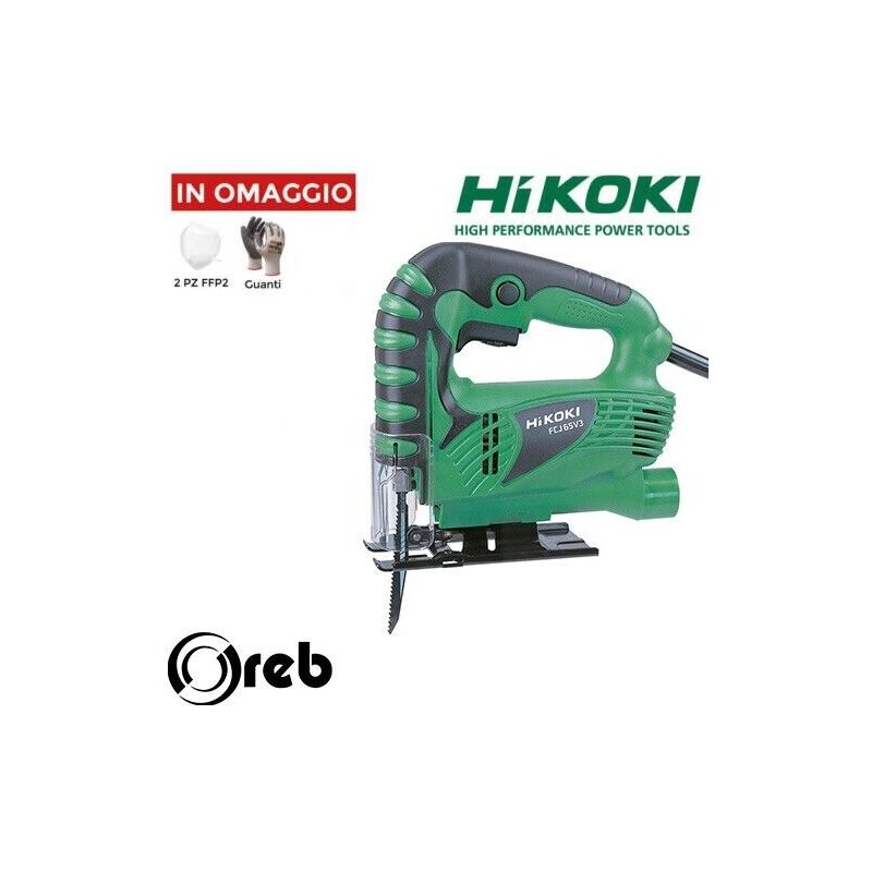 HITACHI HIKOKI FCJ65V3 Caratteristiche: Seghetto alternativo di nuovo design cibernetico con confortevole impugnatura soft-grip e motore potente per una elevata prestazione di lavoro. Elevata capacità soffiante per mantenere sempre pulita la zona di taglio. Montato su cuscinetti a sfere, base in acciaio temperato regolabile a 45 gradi. Interruttore elettronico con regolazione del numero dei giri. Facilmente connettibile ad un aspiratore esterno. Applicazioni: Utilizzo semi-professionale, per l'hobbista esigente. Specifiche Capacità taglio legno 65 mm Capacità taglio acciaio 6 mm Potenza assorbita 400 W Velocità lama 0 ~ 3.000 corse/min Lunghezza corsa lama 18 mm Angolo di taglio massimo 45° (a destra e sinistra) gradi Lunghezza totale 197 mm Larghezza 67 mm Altezza 195 mm Peso 1,5 kg Spazzole carbone 999041 standard Spazzole carbone 999072 autobloccanti Codice articolo FCJ65V3LA Codice EAN 4966376298037 SIAMO CENTRO ASSISTENZA AUTORIZZATO MASTER E VENDITORI POWER LEADER Visitate il