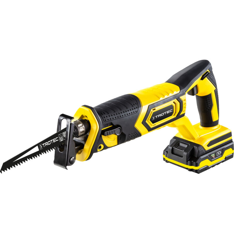 Per tagliare su misura un tubo dell'acqua che sporge dal muro, del compensato o tavole oppure per la potatura stagionale: in cantiere, in giardino e in casa sono molti i lavori di segatura che possono essere eseguiti in modo pratico con una sega senza fili. Non importa se si tratta di tagli dritti o curvi, tagli ad immersione o di tagli a filo di tubi sporgenti: il seghetto a gattuccio (detto anche foretto) compatto e robusto PRCS 10-20V alimentato a batteria, con le relative lame è ideale per segare plastica, materiali da costruzione, legno e metallo. Alimentazione a batteria di lunga durata, compatibile con molti altri utensili a batteria Trotec La batteria agli ioni di litio da 20V/2Ah, potente e durevole, offre prestazioni di taglio di lunga durata e costantemente elevate, anche quando la batteria si sta scaricando. Premendo un pulsante, l'indicatore di capacità a 3 livelli nel vano batteria mostra lo stato di carica, anche se la batteria non è collegata all'apparecchio. Mediante