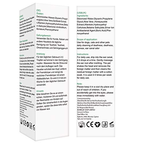 SEGMINISMART Detergente per Orecchie per Cane,Pulizia Orecchie Cane,Dog Ear Cleaner,Stop prurito Rimuovere Earwax,Arresto prurito Acari degli odori e rimozione della Cera