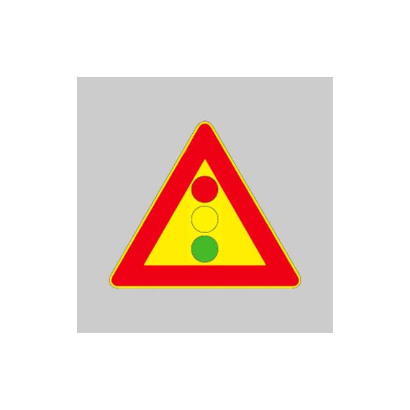 In lamiera spessore 1 mm, rifrangente di Classe 1 (7 anni). Presegnala un impianto semaforico. Segnale cantiere fig. 404 'semaforo' 90 cm Segnaletica stradale e da ponteggi