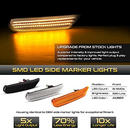 Ogni luce ha 81 chip color ambra, produce 2-3 volte più luminosi degli indicatori laterali della lampadina a filamento di serie , Queste luci di posizione laterali fanno sapere a tutte le auto in arrivo che stai andando verso di loro.