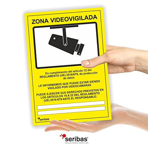 Segnale videosorveglianza - seribas - zona videosorveglianza - cartello telecamera - PVC glaspack 0,7 mm - A4 giallo