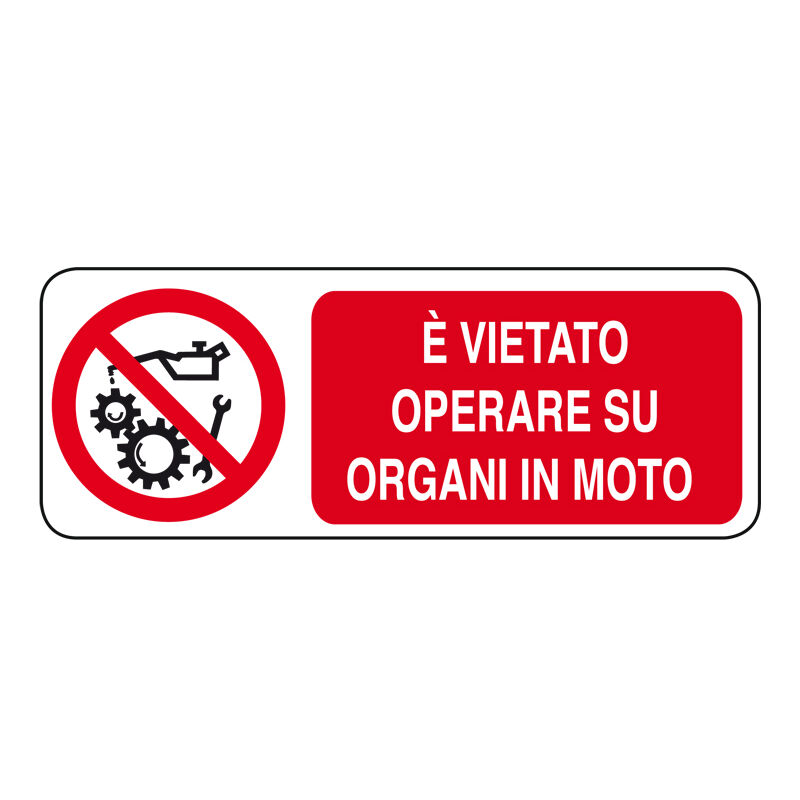 Cartello ' E' VIETATO OPERARE SU ORGANI IN MOTO' in alluminio piano verniciato. Dimensioni 130X333mm
