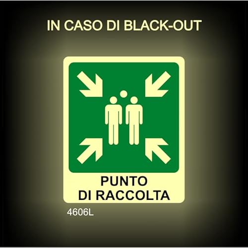 SEGNALETICA LUMINESCENTE - Punto di raccolta - Adesivo Luminescente O Pannello Rigido Luminescente (ADESIVO 30X42 CM)