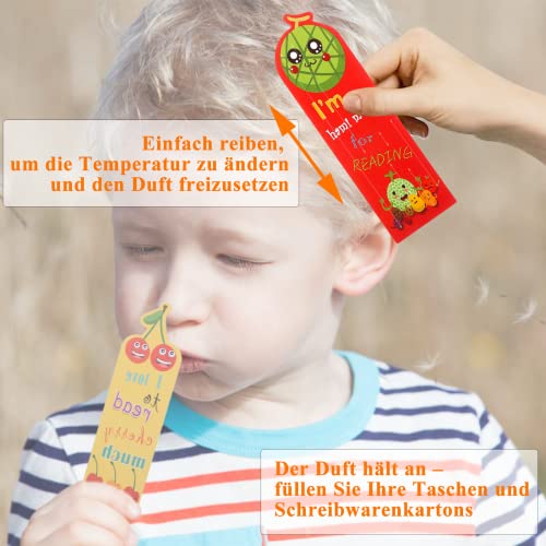 Facile da usare: basta graffiare leggermente la superficie del segnalibro con il dito per annusare il corrispondente profumo del segnalibro. Anche i bambini possono farlo facilmente. I segnalibri hanno una fragranza duratura e una varietà di illustrazioni, sono interessanti e sorprendenti.