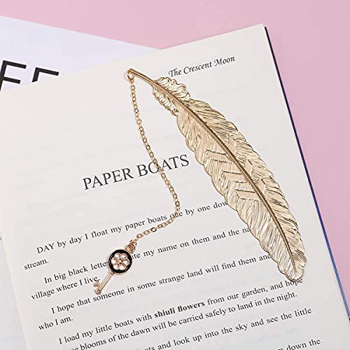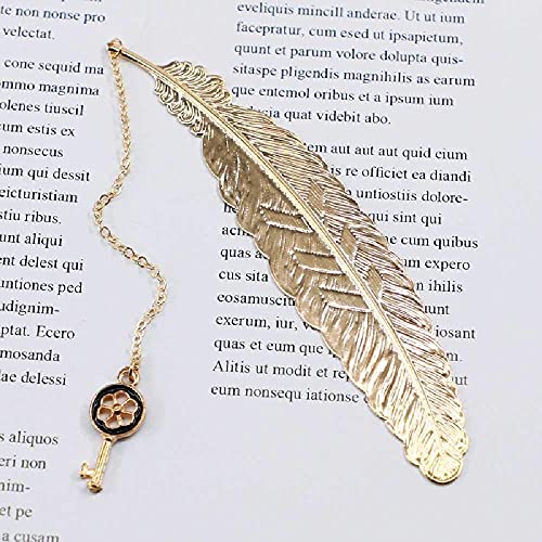 【Design a Forma di Piuma】 il segnalibro in metallo di colore dorato è progettato a forma di piuma vintage con un bel ciondolo, con una chiara trama di piume sulla superficie.
