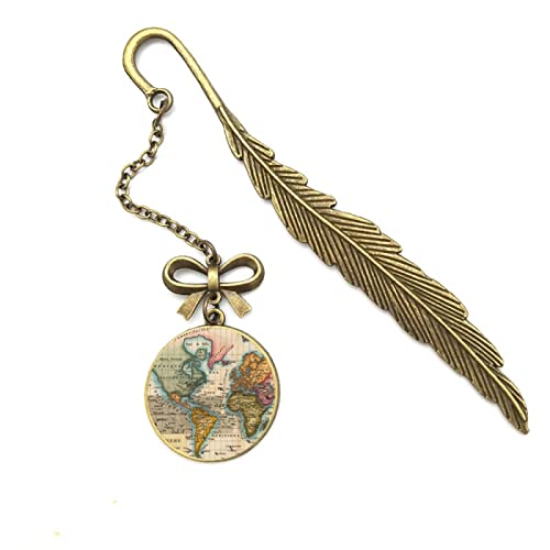 Segnalibri Con Piume Di Metallociondolo Segnalibro Globo Mappamondo A Forma Di Piuma Con Cupola In Bronzo A Cupola In Vetro,A-4,2 Pz