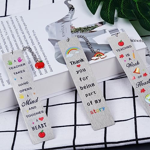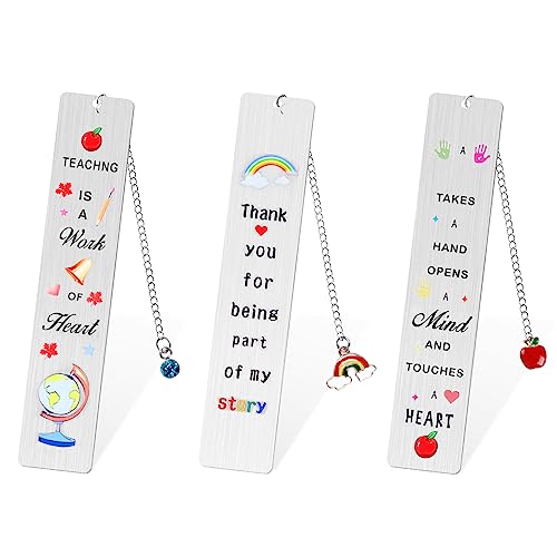 Dimensioni adeguate: 13 * 2,6 cm / 5,11 * 1,02 pollici dimensione segnalibro, può facilmente riempire il libro e lasciare che lei / lui facilmente trovare l'ultima posizione di lettura, adatto per la maggior parte dei libri.Tre segnalibri con: "TEACHNG IS A WORK OF HEART" "GRAZIE PER ESSERE PARTE DELLA MIA STORIA" "A TEACHER TAKES A HAND OPENS A MIND AND TOUCHES A HEART"