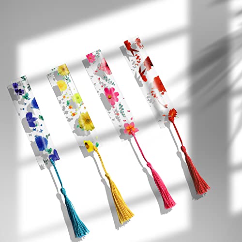 Segnalibro Fiori Resina con Nappa Segnalibro Trasparente per Bambini Adulti Lettori Insegnanti Studenti Marcatura Laterale