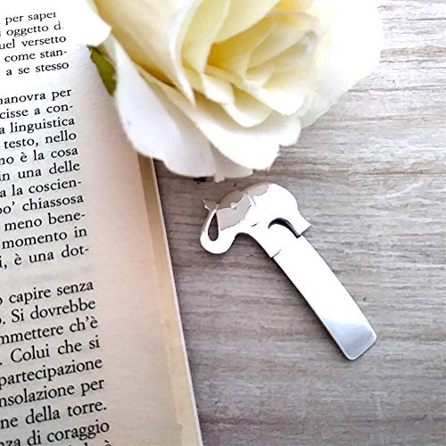 Segnalibro a forma di elefante in argento 925 con incisione personalizzata. Elefantino portafortuna in argento