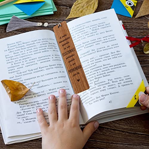 Segnalibro Legno con Frase Motivazionale Segnalibro con Nappe Scritte Italiane Segnalibro Particolare Lettura Idee Regalo Compleanno Natale Bomboniere Laurea Maestra Insegnanti Studenti (A)