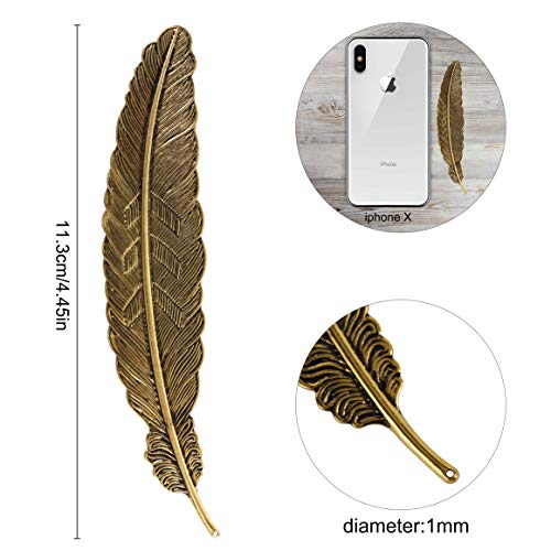 Design innovativo: ogni segnalibro di piume di metallo con un piccolo foro all'estremità, comodo da riporre, puoi anche fare il fai-da-te con una perlina, una nappa o altri come preferisci, la forma della piuma ti ricorda la penna d'oca medievale, un flusso di fascino antico e duraturo.