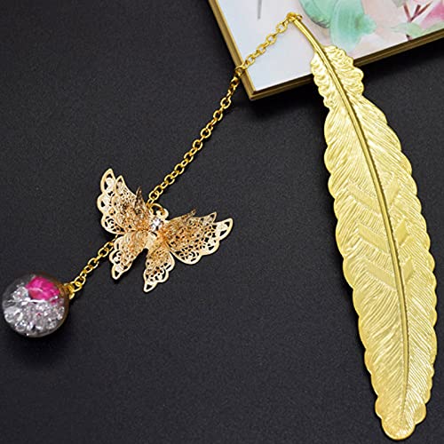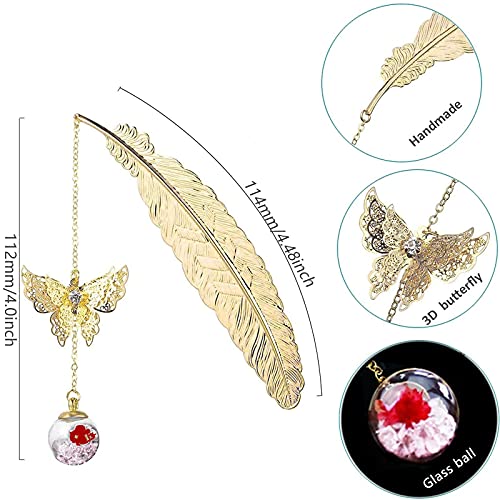 Segnalibro Piuma con Ciondolo Segnalibri di Piume in Metallo Segnalibro Retrò con Farfalla 3D e Perline di Cristallo di Fiori Secchi per Lettori Amici Regali di Compleanno per Bambini Studenti