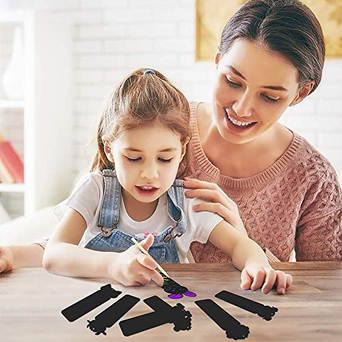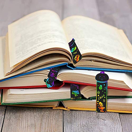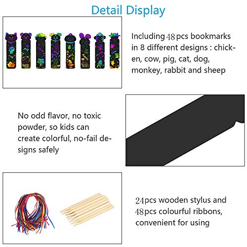 Segnalibro, Segnalibro Scratch, Animali, con 48 Corde Colorate e 24 Penna in Legno, per Feste, Feste a Tema Giungla, Feste di Compleanno, Scuola,Forniture artigianali per bambini