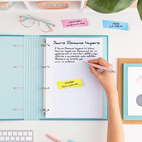 Segnapagina Blocchetti Memo Adesivi Linguette Adesive Colorate Segnalibri Sticky Notes Foglietti per la Scuola la Casa o l'Ufficio Multicolore (76x25 mm - 3x100 Fogli)