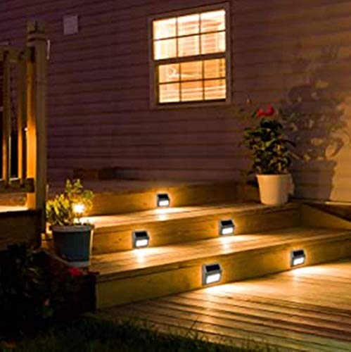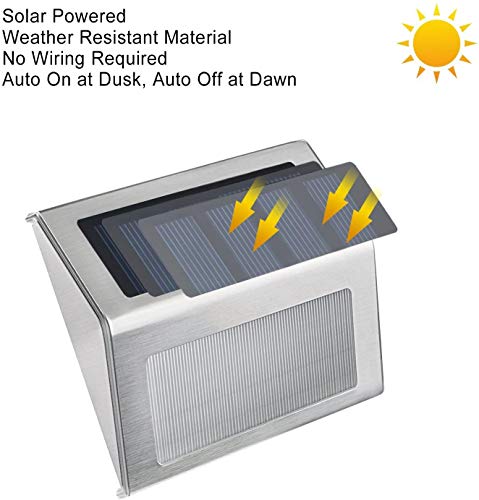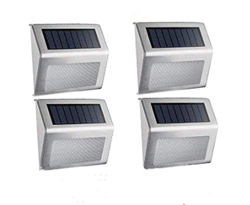 Segnapasso solari, Luci solari in acciaio inossidabile Luci per scale solari da esterno da giardino Luci di sicurezza per Gradini Scale Sentieri Patio Giardino (Bianco caldo, Confezione da 4)
