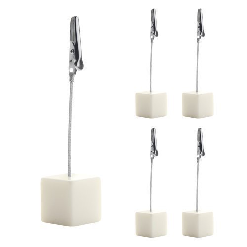 Segnaposto con Clip portacartoncino, base a cubo, altezza totale 13 cm. Utili come Segnatavoli o Segnaposto per Matrimoni. Confezione da 5 pezzi. Bianco