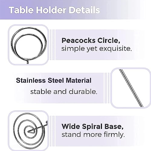 Design elegante: bellissimo segnaposto numeri da tavolo, composto da una clip ad anello e una base a spirale, il colore argento lucido rende il porta biglietti da visita desktop in metallo più bello e affidabile. Non solo può posizionare biglietti da visita e foto, ma ha anche l'effetto di decorare il tavolo da pranzo.