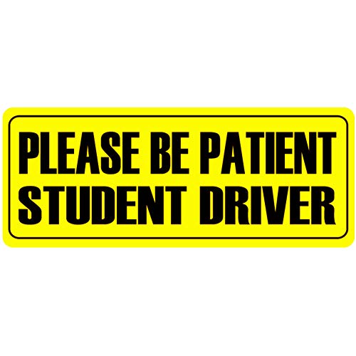 L'insegna dello studente autista è realizzata con caratteri neri che si combinano perfettamente con un vivace colore di sfondo giallo che è così leggibile anche a distanza.
