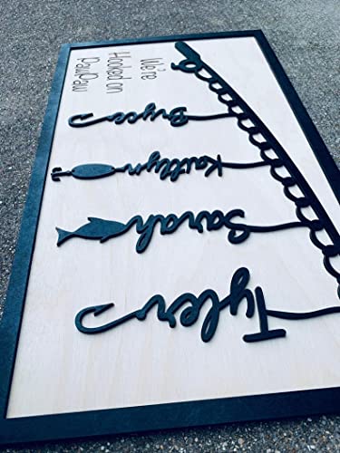 Segno di pesca in legno Siamo agganciati al nonno, papà, papà, festa del papà, segno di compleanno, personalizzato, viaggio di pesca, regalo per lui