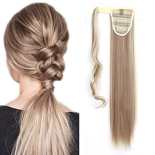 SEGO 58cm Extension Clip Coda di Cavallo Capelli Sintetici Lunghi Lisci Ponytail Extension - Biondo Rossiccio/Biondo Chiarissimo
