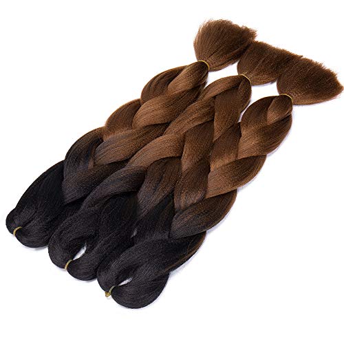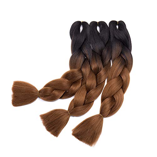 SEGO Capelli per Treccine Africane Afro Extension Sintetiche 3 Ciocche Trecce Lunghe 60cm Braids Braiding Hair Intrecciati Corchet 300g/pack - Nero/Marrone