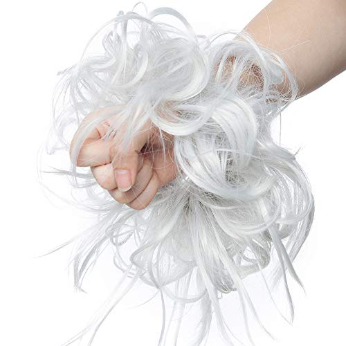 SEGO Chignon Capelli Finti Ricci Extensions Elastico Hair Bun Updo Fai da Te 45g (crocchia messy, Grigio Argento)