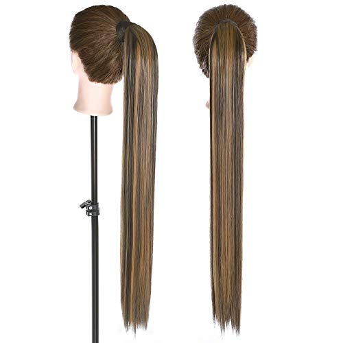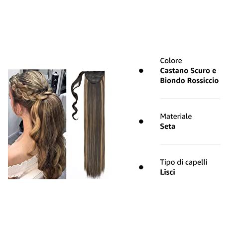 SEGO Coda Capelli Clip Fascia Unica Ponytail Cavallo Hair Lisci Posticci Donna 80cm 140g - Castano Scuro e Biondo Rossiccio