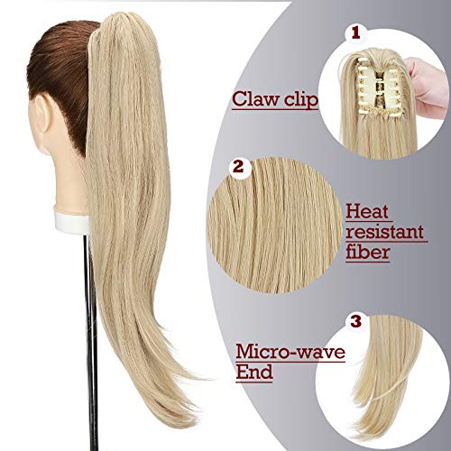 SEGO Coda Capelli Clip Pinza Extension Coda di Cavallo 55cm Capelli Mossi Sintetici Ponytail Parrucchino Fascia Uncia Posticci Donna 155g - Biondo Scuro mix Biondo Chiarissimo