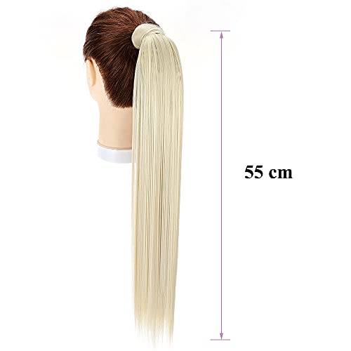 SEGO Coda di Cavallo Extension Clip Capelli Lisci Ponytail Parrucchino Posticci Donna Lunghi 55cm Pesa 90g - Biondo Chiarissimo