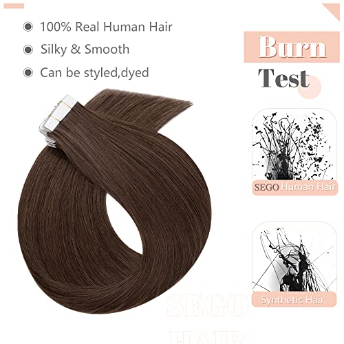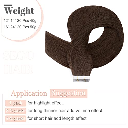 SEGO Extension Adesive Capelli Veri Biadesivo 20 Ciocche Biadesive Tape Extensions 100% Remy Human Hair 50g 35 cm #4 Castano Medio