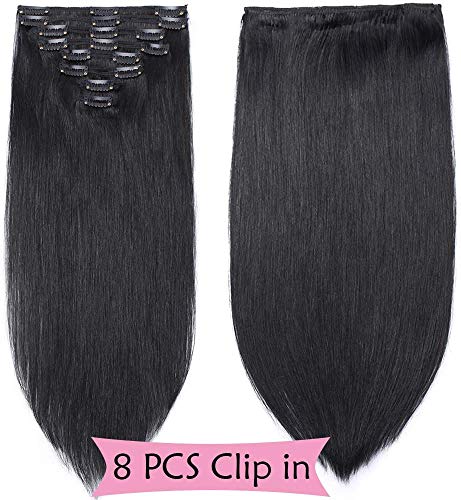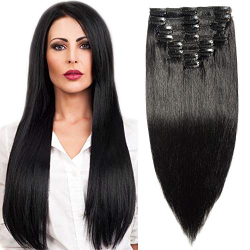 SEGO Extension Capelli Veri Clip Neri Volumizzante Double Weft 50cm 100% Remy Human Hair Lunghi Lisci Naturali Umani 8 Fasce 150g #1 Jet Nero