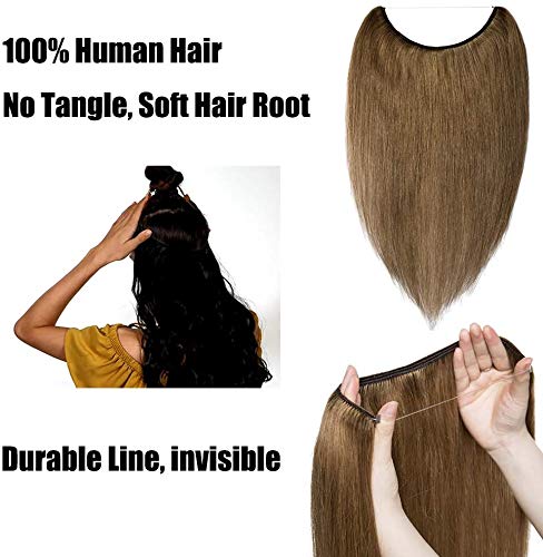 SEGO Extension Capelli Veri Filo Invisibile Castano Fascia Unica 55cm 100% Remy Human Hair Senza Clip Lisci con Wire 75g 3/4 Full Head #6 Marrone Chiaro