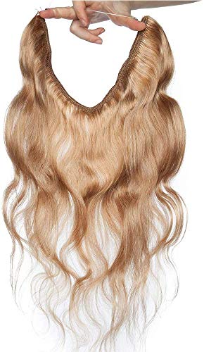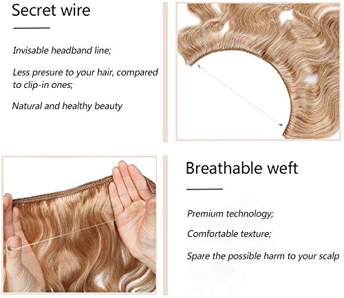SEGO Extension Capelli Veri Filo Invisibile Naturali No Clip Ricci Mossi Fascia Unica Regolabile Remy Human Hair 45cm 65g #27 Biondo Scuro