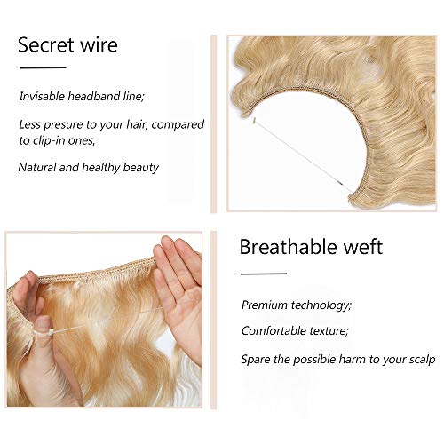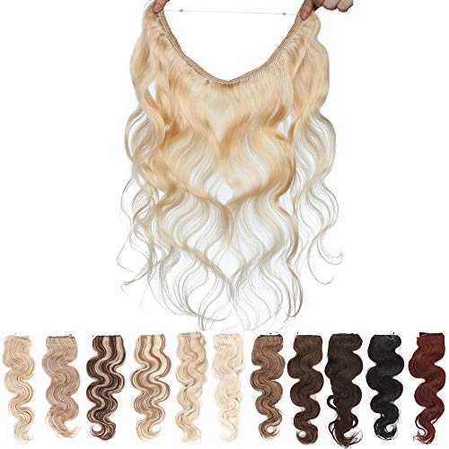 SEGO Extension Capelli Veri Filo Invisibile Ricci Mossi No Clip Fascia Unica Remy Human Hair Naturali Regolabile 3/4 Full Head 60g (40cm, 613 Biondo Chiarissimo)