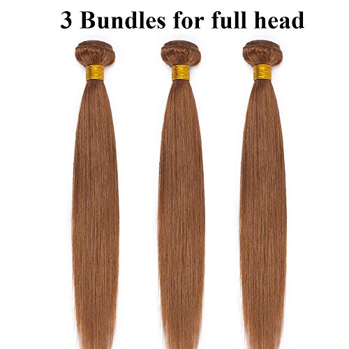 SEGO Extension Capelli Veri Tessitura Matassa Virgin Human Hair Brasiliani Lisci Senza Clip #30 Castano Ramato Chiaro 40cm 100g Double Weft per Cucire