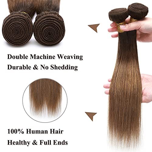SEGO Extension Capelli Veri Tessitura Virgin Human Hair Brasiliani Matassa Shatush 100g Capelli Lisci per Cucire 30cm #4T30 Marrone Cioccolato/Castano Ramato Chiaro