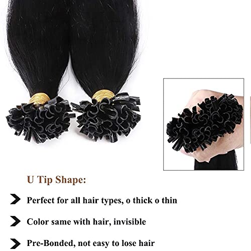 SEGO Extension Cheratina Capelli Veri 1 Grammo * 50 Ciocche U Tip Nail Pre-Bonded Remy Human Hair Naturali senza Clip 40cm 50g #1 Jet Nero