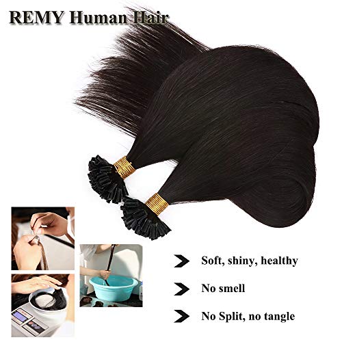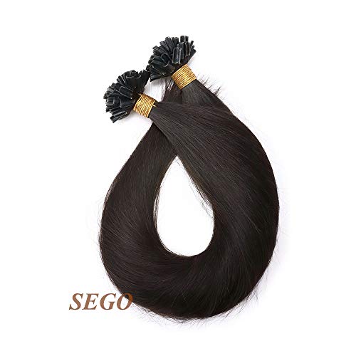 SEGO Extension Cheratina Capelli Veri 1 Grammo 50 Ciocche 40cm U Tip Nail Pre-Bonded Remy Human Hair Neri Lisci 50g Extensions Invisibili #1B Nero Naturale