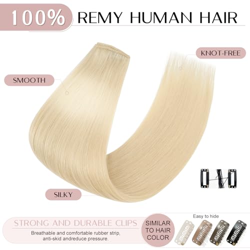 SEGO Extension Clip Capelli Veri 8 Fasce Singole - 100% Remy Human Hair Lisci Lunghi Parrucca Donna 25 cm (50 g) #613 Biondo Chiarissimo