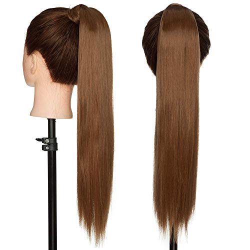 SEGO Extension Coda di Cavallo Capelli Clip Lisci Hair Ponytail Posticci 65cm - Marrone Chiaro