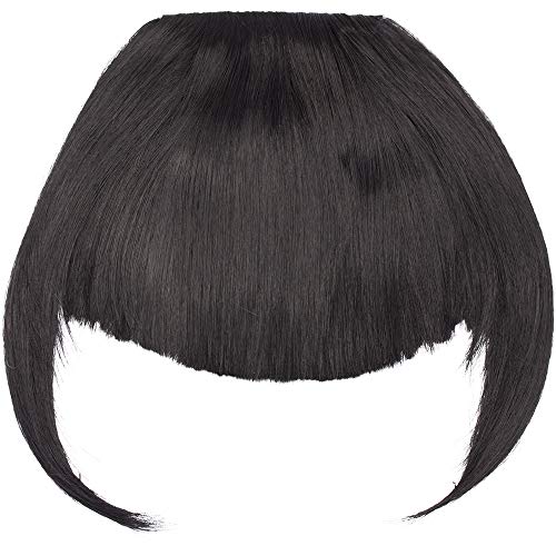 SEGO Frangia Clip Capelli Frangetta Finta Frontale Extension Clips Hair Bang Fascia Unica Corta Fringe Lisci Posticci Donna 30g #1 Nero Scuro