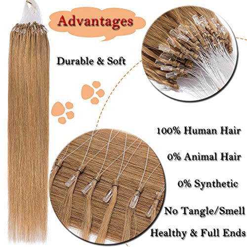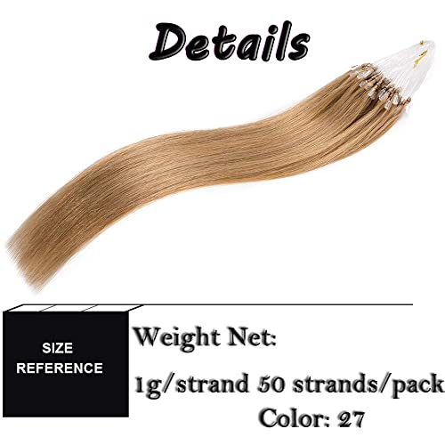 SEGO Microring Extension Capelli Veri Anelli 1 Grammo - 50 Ciocche Hair Extensions Anellini 50g Remy Human Hair (0.5 g) 40 cm #27 Biondo Scuro