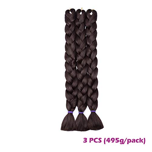 SEGO Treccia Finta per Treccine Africane Extension Capelli Fibre Lunghe 104cm Afro Braiding Hair Ombre Colorate Donna Bambina 500g, 3 Fasce/Pack, 4 Marrone Cioccolato