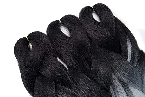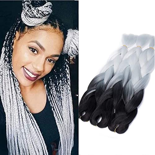 SEGO Treccia Finta Treccine Africane Extension Capelli Fibre Lunghe 60cm 300g/3packs Afro Braiding Hair Ombre Colorate Donna Bambina #26 Nero/Bianco