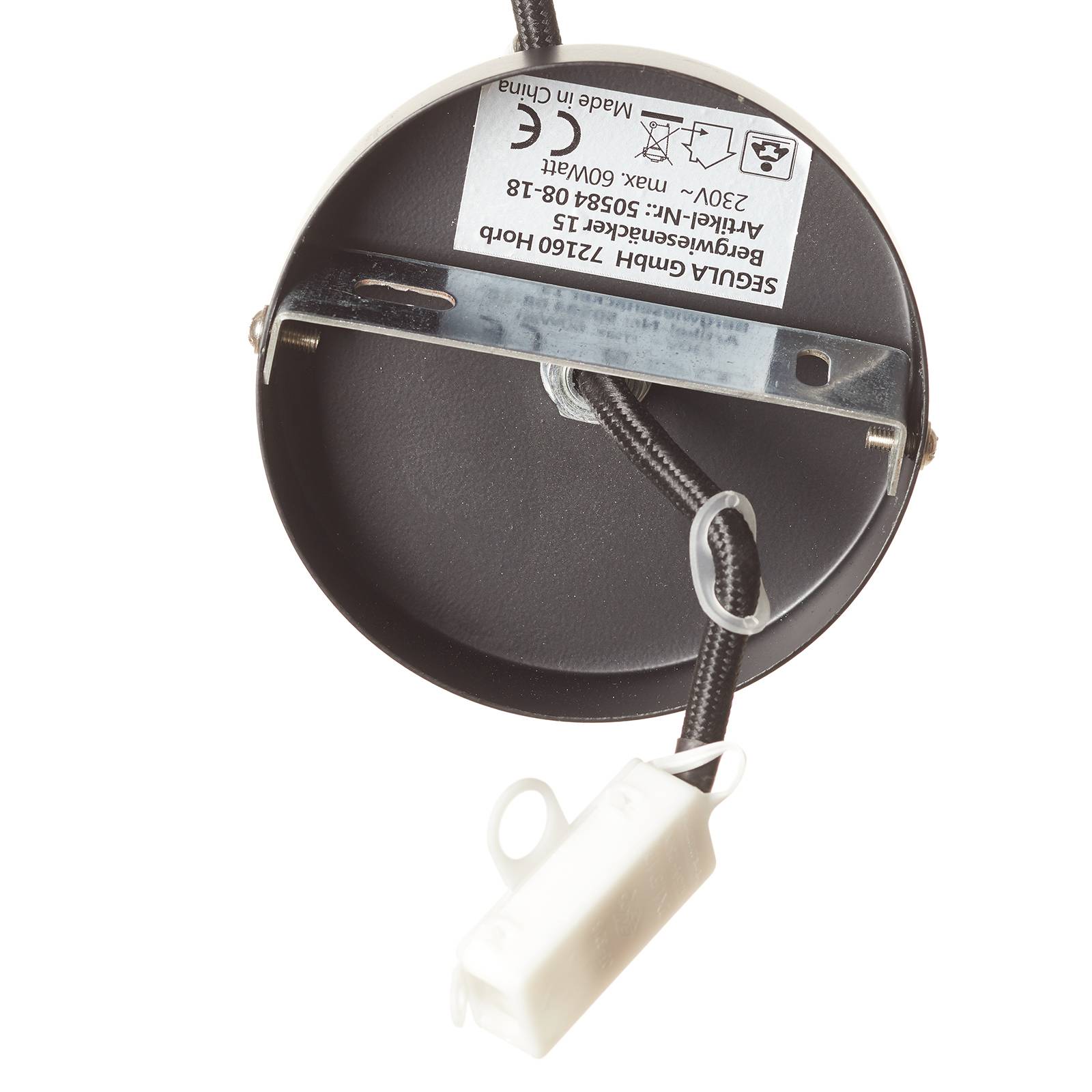 New York - lampada a sospensione minimalista senza paralumeL'aspetto di questa lampada a sospensione New York può essere variato a seconda dell'uso della sorgente luminosa. L'apparecchio è composto solo da un baldacchino rotondo e da un portalampada E40 in porcellana nera lucida. Con una lampada a globo, una lampada a specchio o una sorgente luminosa di forma particolare, da ordinare separatamente, l'aspetto e l'effetto luminoso dell'apparecchio possono essere completamente adattati al gusto personale e alle esigenze di illuminazione.