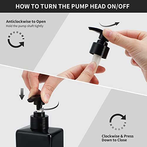 【Testa della pompa in materiale PP】 Non arrugginisce, facile da pulire, riciclabile. Ruotare in senso antiorario per aprire per l'uso. Ruotare in senso orario per chiudere e impedire la fuoriuscita della lozione.